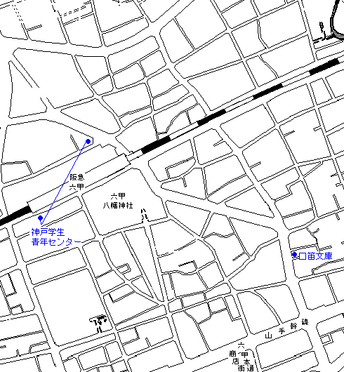 阪急神戸線六甲駅周辺には駅南東に口笛文庫があります。