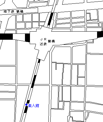 JR環状線および近鉄大阪線の鶴橋駅周辺には駅南の環状線高架下に楽人館(らくとかん)があります。
