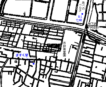 大阪地下鉄阿倍野駅周辺には、駅西のあべのベルタ 地下1Fに書肆七味、駅南西の路地に、ますく堂があります。