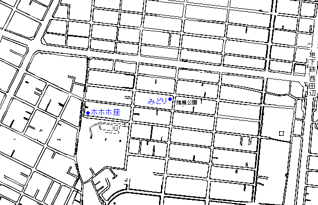 大阪市営地下鉄御堂筋線・西田辺駅周辺には、駅西の阪南播磨公園西向かいに「みどり」、さらにその西にホホホ座・西田辺があります。