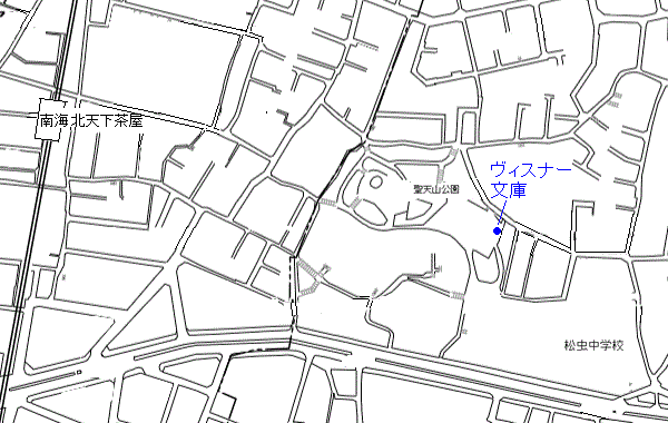 南海電鉄・北天下茶屋駅周辺には、駅東の聖天山公園に面した民家の2Fにヴィスナー文庫があります。