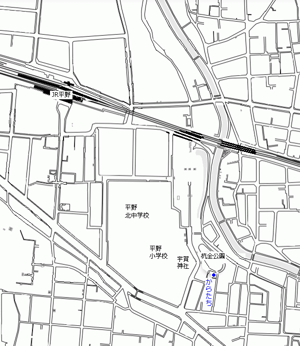 JR大和路線・平野駅の南、宇賀神社の東、杭全公園に面した路地裏に古書からたちがあります。