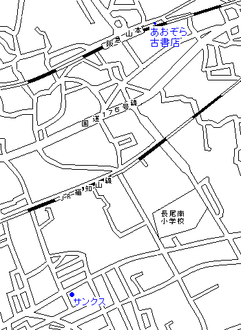 阪急宝塚線・山本(やまもと)駅周辺には、駅東に、あおぞら古書店、駅南のJR宝塚線をさらに南にいった長尾南小学校から西に行ったところ(伊丹市)にサンクス・バラ公園店があります。