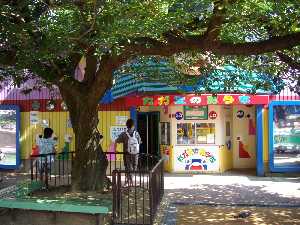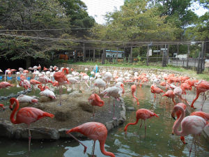 入場口前のフラミンゴ、クジャク、ゾウの配置は30年以上変わっていないです。