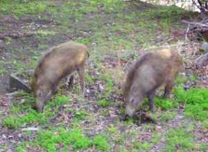 新神戸駅付近の山すそで遭遇した新芽をむさぼる猪です。