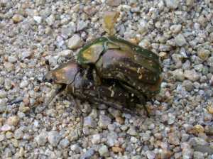 そして、近所の公園で遭遇した交尾に夢中なカナブンさんです。