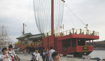 中突堤には海上から花火を見るための御座舟が停泊してました。