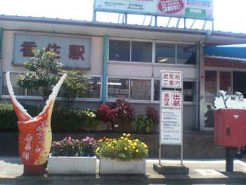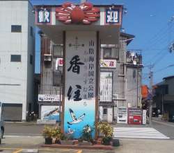 城崎から香住に到着。特急列車の通過待ちの時間があり、駅周辺を見学しました。