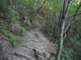 風吹岩からゴルフ場を抜けて雨ヶ峠を通り六甲の最高峰に行く登山道はややキツめです。