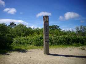 風吹岩から登山道をしばらく歩くと、イノシシ除けの柵に囲まれたゴルフ場を横切ることになります。