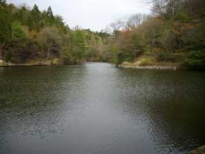 梅の園の北側には洞川湖があります。