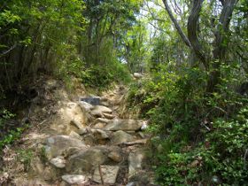 ここから山頂まで、ひたすら階段と岩場を登っていきます。