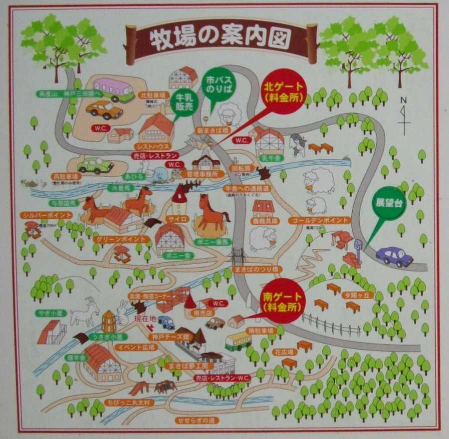 六甲山牧場は北西部に馬、アヒル、ポニー、豚、北東部に乳牛、南西部にヤギ、ウサギ、羊の舎があります。