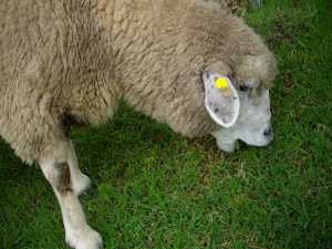 羊は放牧されていて、牧場のそこかしこで牧草をかじっています。