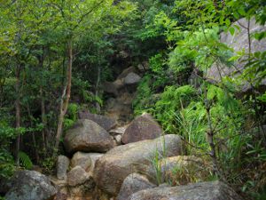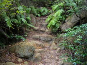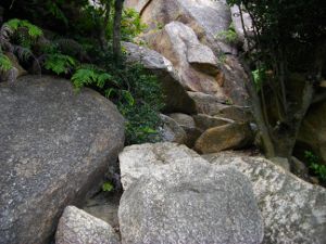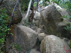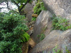 さらに岩を登り、木の梯子をのぼってしばらくすると岩場は終了です。