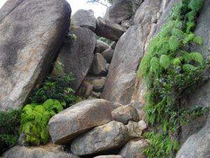 岩梯子を登り、さらに岩場を登ります。