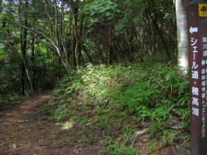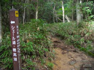 マムシ谷への分岐を経て、ゆるやかな道を歩くと穂高湖周遊路へ合流します。