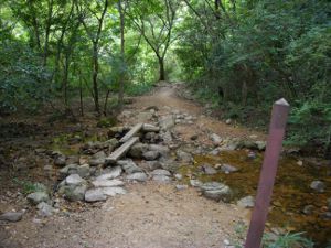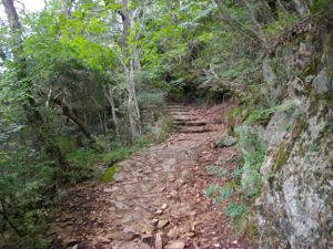 道は谷道なので急な傾斜はほとんどないゆるやかな登山道です。