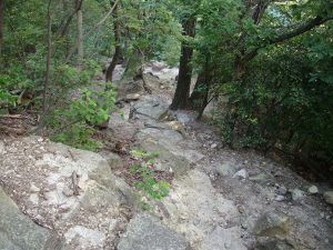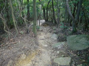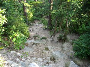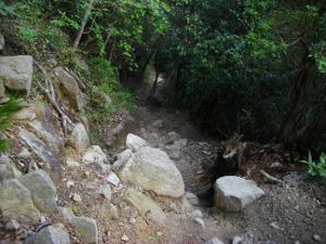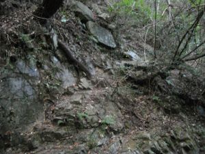 中腹から麓に近い場所ではガレ場もいくつか通ります。