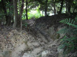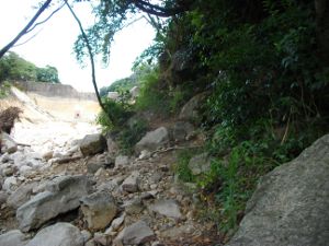 2012年8月にいった時には合流地の砂防ダムが崩落していました。