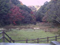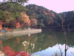 さらに山道を下り、狸々池のほとりを抜けていきます。