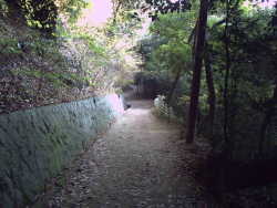 ふもとに近づくにつれ舗装された道路が登山道と平行に走り、諏訪山公園近くには住宅や学校が建設されています。