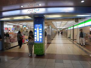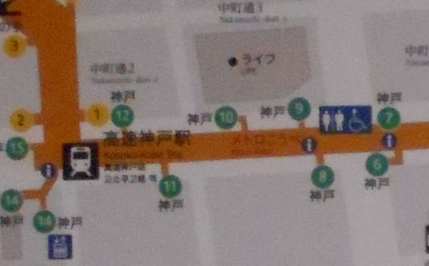 ■メトロ神戸 神戸タウン 高速神戸駅西口から高速神戸駅東口の間がメトロ神戸の神戸タウンです。 ![]() 高速神戸駅西口から高速神戸駅東口まではショップ街になっていて、 衣料や飲食、靴、カバンなどの店が並んでいます。 ![]() 高速神戸駅東口から地下街は南に曲がります。 地下街の東端が湊川神社への出口になっています。 ![]() |