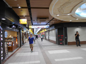 ■ドージマ地下センター 地下鉄四つ橋線西梅田駅南から梅田地下街の西南端に延びている地下街がドージマ地下センターです。 ほぼ直線の地下街ですが、紀陽ビル、近鉄堂島ビル、堂島アバンサ、桜橋東洋ビルの各地下街と連絡していて、アリの巣状の広がりがあります。 ![]() ドージマ地下センターの南端です。 紀陽ビルへの連絡口と地上への階段があります。 ![]() 紀陽ビルの飲食街を抜けて、地上へ出たところです。 ![]() ドージマ地下センターの長さはだいたい300mぐらいだそうで、飲食店をはじめ書店、衣料の他いろいろな店が軒を連ねています。 ![]() 堂島アバンサを抜けて地上に出るとキタ新地の飲み屋街に出ます。 向かい側にある近鉄堂島ビルの地下食堂街・フォレスタ21を抜けると西側出入り口があります。 ![]() |
