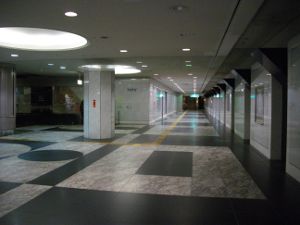 ■曽根崎地下歩道 御堂筋からJR北新地駅まで続く地下通路が曽根崎地下歩道です。 御堂筋と連絡している割に、いつでも人通りが少なく閑散としています。 ![]() ![]() 御堂筋への出口と通路です。 まっすぐ進むと大阪駅前第3ビル、左方向へいくと曽根崎地下歩道です。 ![]() |
