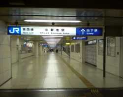 ■JR東西線北新地駅 JR東西線北新地駅です。曽根崎地下歩道と四つ橋線西梅田駅とをつないでいます。 真ん中地点でディアモール大阪とも連絡しています。 ![]() ![]() |