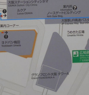 ■グランフロント大阪 2013年にJR大阪駅北にできた商業施設グランフロント大阪へはJR大阪の商業施設ルクアの地下を経由して繋がっています。 ![]() グランフロント大阪は南館のみ地下が繋がっています。 ![]() ![]() グランフロント大阪南館の地下を通り抜け、うめきた広場に出たところです。 ![]() |